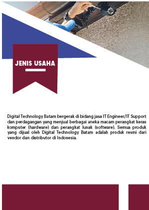 DIGITAL TECHNOLOGY BATAM IS OFFICIALLY ESTABLISHED ON 2018. THE ESTABLISHMENT OF THIS COMPANY AS AN OPPORTUNITY IN THE WORLD OF IT INFRASTRUCTURE WHICH IS GROWING IN INDONESIA. DIGITAL TECHNOLOGY BATAM IS A COMPANY SERVICED IN THE SERVICE AND SALES OF CCTV, ACCESS DOOR, FINGER PRINT, PABX, AUTO GATE, SECURITY SYSTEM, CABLE, NETWORKING, PROGRAMMING, WEBSITE DEVELOPMENT AND COMPUTER, BOTH HARDWARE AND SOFTWARE. As a new addition, Digital Technology Batam are authorized Service Center for Fujitsu, Zyrex, Viewsonic, Zoan & Avita Brands. This includes selling point and service center, as well as warranty drop-off point.